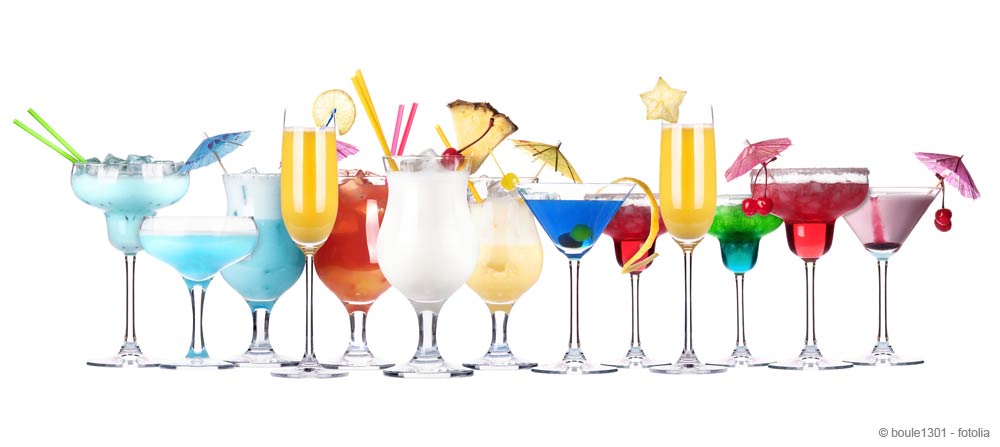 Lebenslust und Partylaune prägten die 80er Jahre. Genauso expressiv und farbenfroh wie der Modestil waren auch die Cocktails jener Zeit. Typisch waren zum Beispiel blaue oder grüne Cocktails auf der Basis von Blue Curaçao, einem blau gefärbten Orangenlikör, oder Mixgetränke mit Campari, einem bitteren italienischen Likör. Doch für einen erfrischenden farbenfrohen Cocktail muss nicht unbedingt Alkohol im Spiel sein. Zwei Beispiele, die auch Kindern schmecken, präsentieren wir hier: