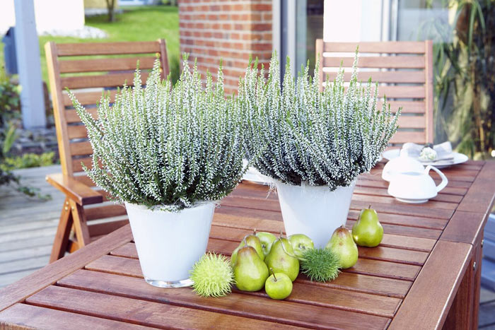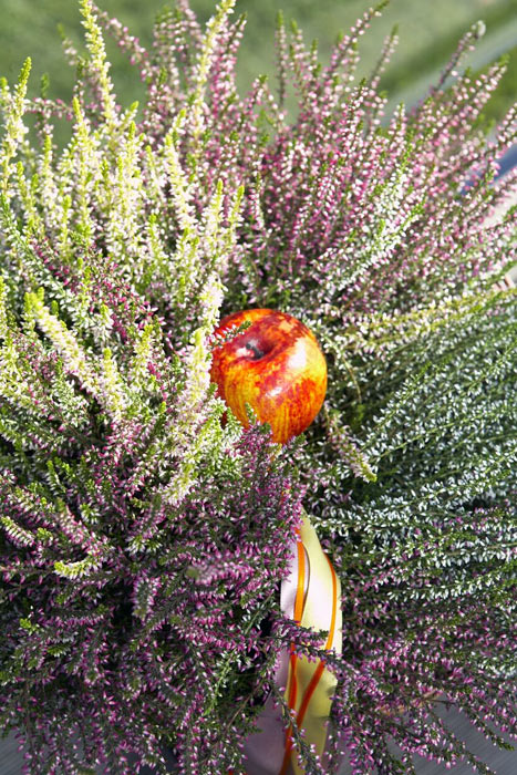 Die robuste Heide eignet sich jetzt also prima für die Balkon- und Terrassenbepflanzung. Kombiniert mit Physalis, Hagebutten oder Äpfeln lassen sich mit ihr auch kleine Flächen stimmungsvoll bepflanzen.