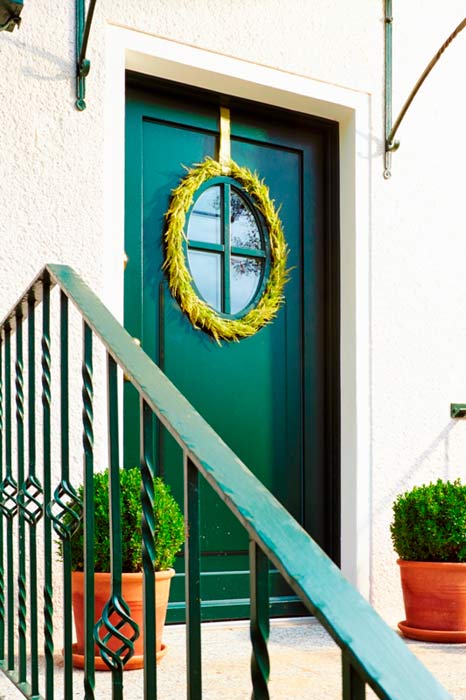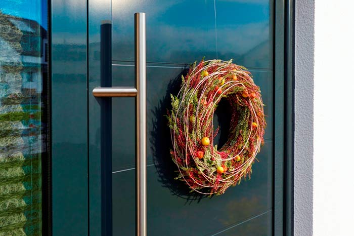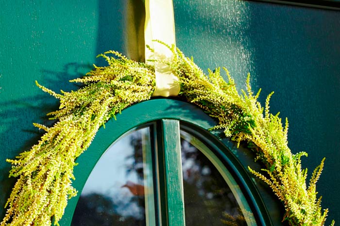 Eine einladende Dekoration an der Haustüre signalisiert Besuchern Gastfreundlichkeit und bietet auch gleich ein Gesprächsthema. Eine saisonal Türe ist zudem eine dekorative Abwechslung. Aus Heide kann man modernen Türschmuck in vielen Varianten gestalten.