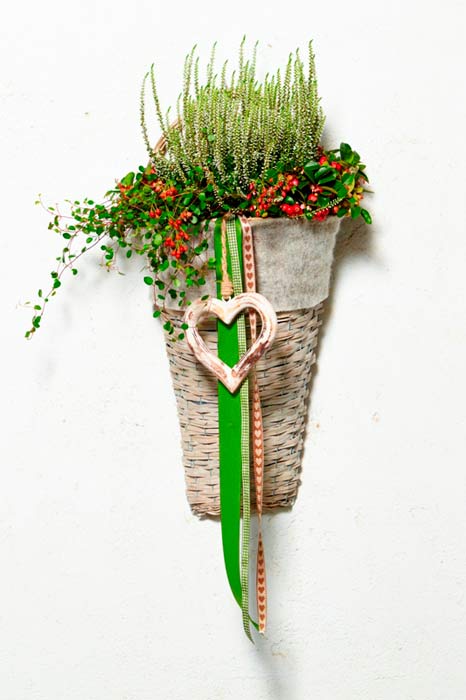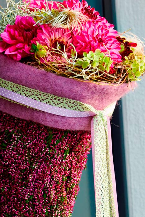 Von der geradlinigen und schlicht-einfarbigem Türdekoration aus Ericen bis hin zu romantisch-verspielten hängenden Pflanztüten ist alles möglich. Heide kann vielseitig eingesetzt werden. Einen Vorteil hat sie jedoch in jedem Fall: Sie behält auch in getrocknetem Zustand ihre tollen Farben bei.